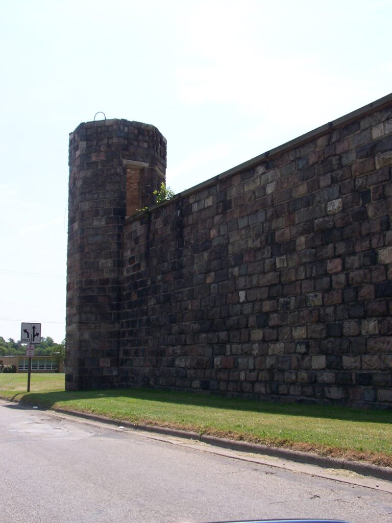 The former wall and tower give a visual connection with the earlier function of the site as a prison.