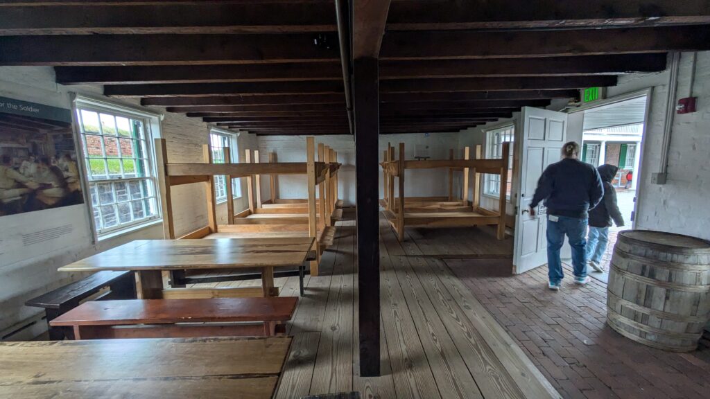 The sally port provides a defensible entrance to the fort. From inside is access to the bombproofs through doors to either side where troops are held.