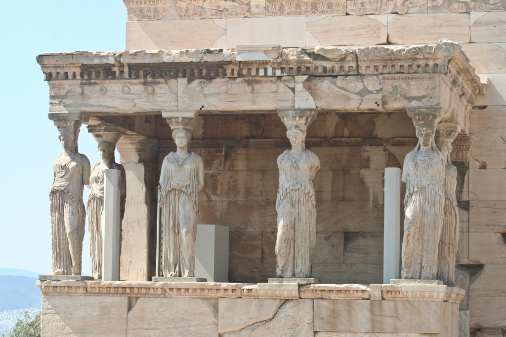 A temple on the Acropolis in Athens; the most important monument of the Ionic style, including a fine example of a porch of caryatides. Photo of Erectheum, Athens, Greece from Wikipedia. (Harris, 1977)