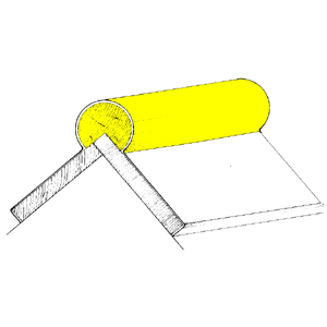 A rounded piece of tile, wood, or metal used to cover, finish, and sometimes add a decorative effect to the ridge or hip of a roof. (Phillips, 1994)