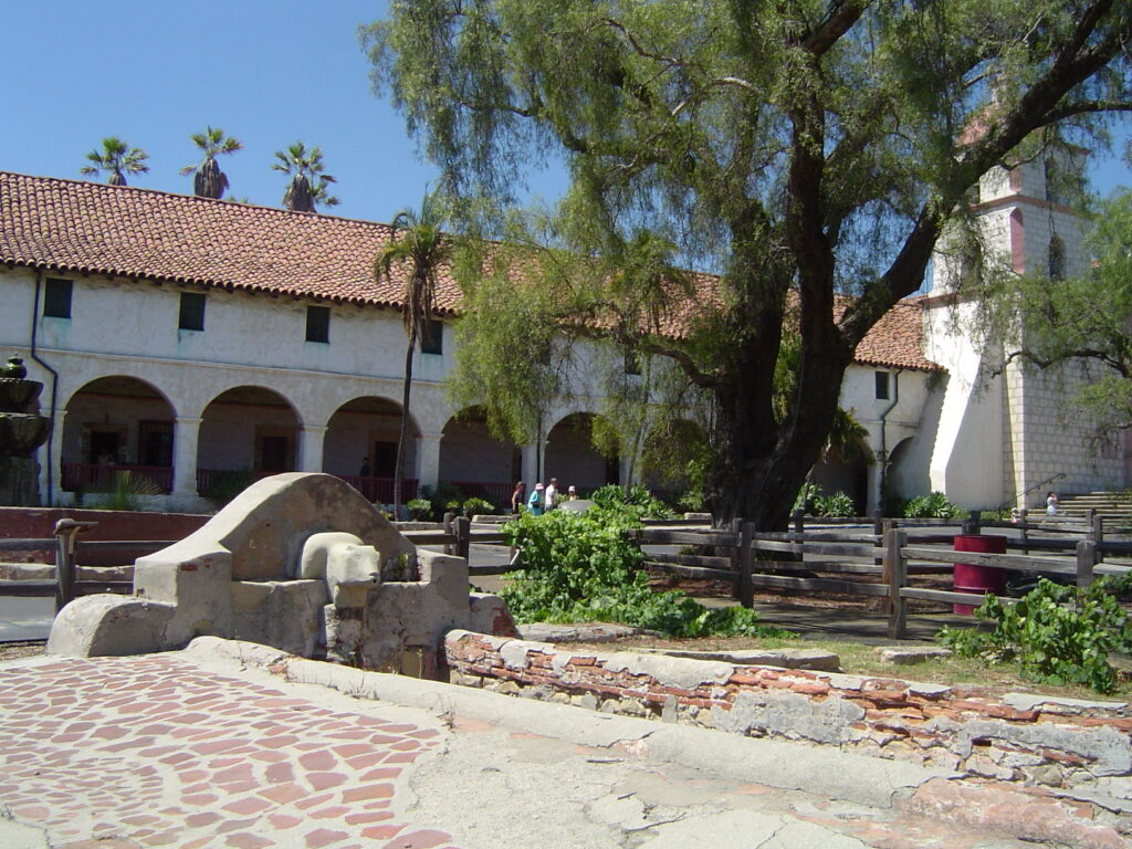 An architectural style characterized by stucco walls, round arches supported by piers, continuous wall surface forming parapets, hip roof with red tile roof covering, decorative stringcourse outlining the arches, and overhanging eaves with exposed rafters. (Towers, curvilinear gables, and gablets found in larger examples of this style). (Phillips, 1994) Photo from Cocoa Beach, Florida, 2024.