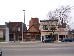 This two story brick Italianate building has a wooden cornice with brackets and corbels. Formerly Navarres Shade and Carpet, the building houses an art gallery today.