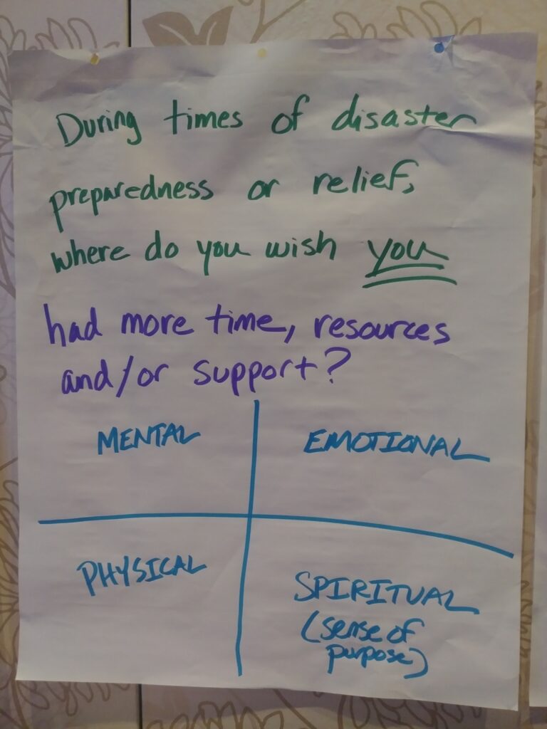 Attending the Livable Communities National Conference in Dallas was a special opportunity. One of the unexpected highlights was an early morning session on the edge of the conference hall. The topic was on resiliency and disaster response. Four key elements needed during such times were: mental, emotional, physical, and spiritual. The facilitator was well prepared and was able to draw out insightful feedback from participants on each of these points.