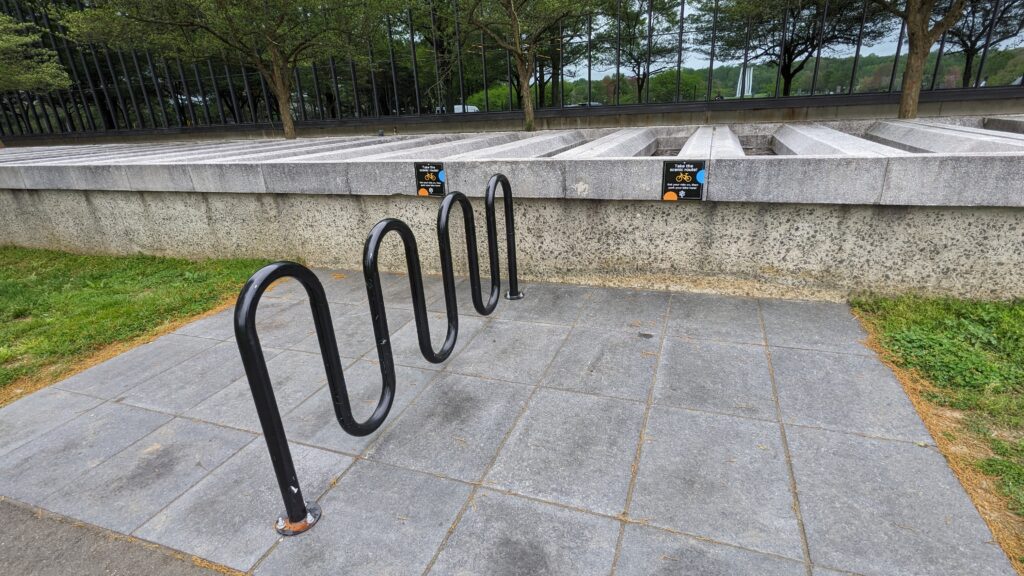 Bike racks are available though during our visit around noon on a weekday in May, no one seems to have taken the site management on the offer to bike in to Bell Labs.