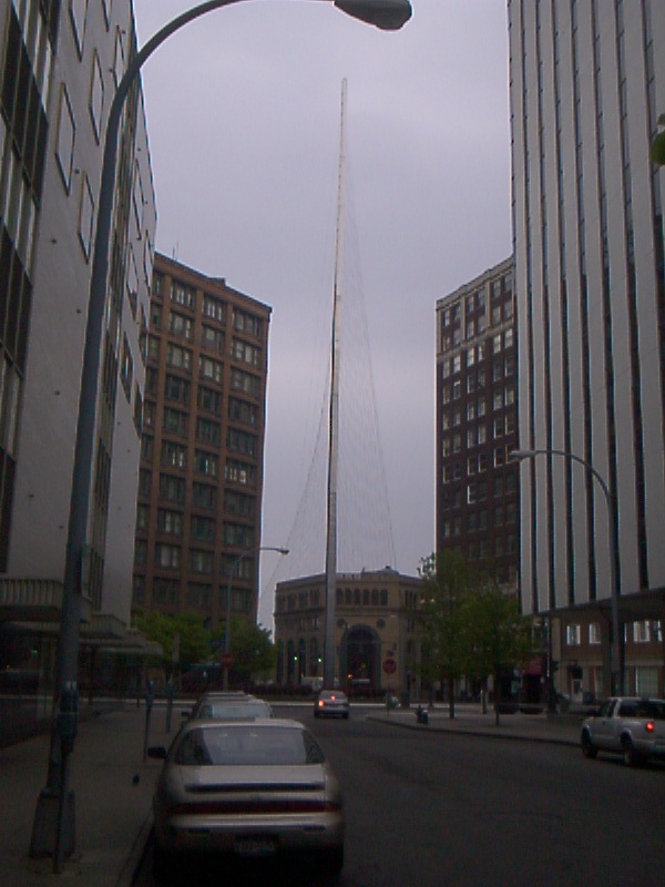 Catenary structure in the downtown also doubling as a sculptural element uniting other tall buildings together.