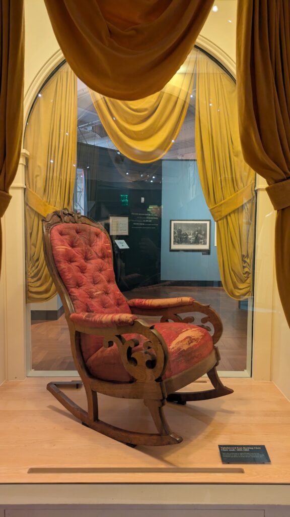 The infamous chair that Lincoln sat on is in the collection of The Henry Ford in Dearborn, Michigan.