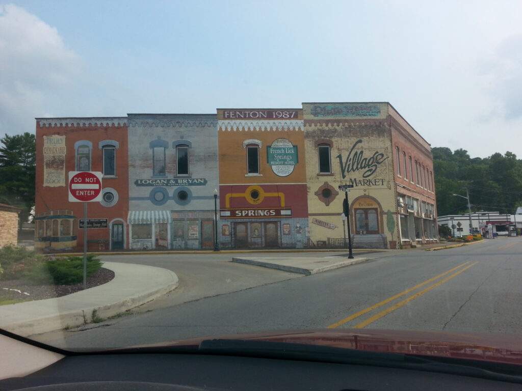 In town we found this trompe l’oeil mural depicting vintage storefronts to be a clever use to break up a blank wall of a historic building.