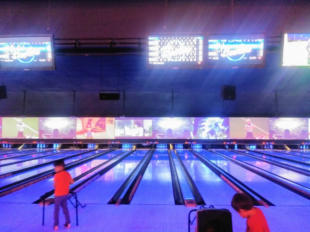 Originally analley in a garden, enclosed by hedges orshrubbery, in which the game of bowls was played; or a bowling green, if long and narrow. 2. In the U.S., a covered place and floor for the playing of the gamed called variously Tenpins, Ninepins, Bowling… (Sturgis, 1900) Photo from North Brunswick, New Jersey, 2026.