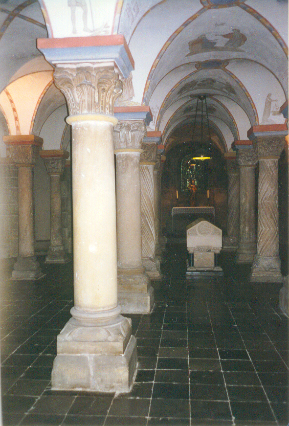 A chambered cellar serving as a cemetery in, particularly, ancient Rome. Photo of Marienkirche, Lubeck, Germany, 1996. (Willensky, 2000)