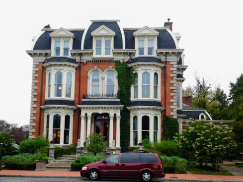 A mansard roof where the slope is curved out to create a bulging look. Photo from Buffalo, New York, 2011. (Gottfried & Jennings, 1985)