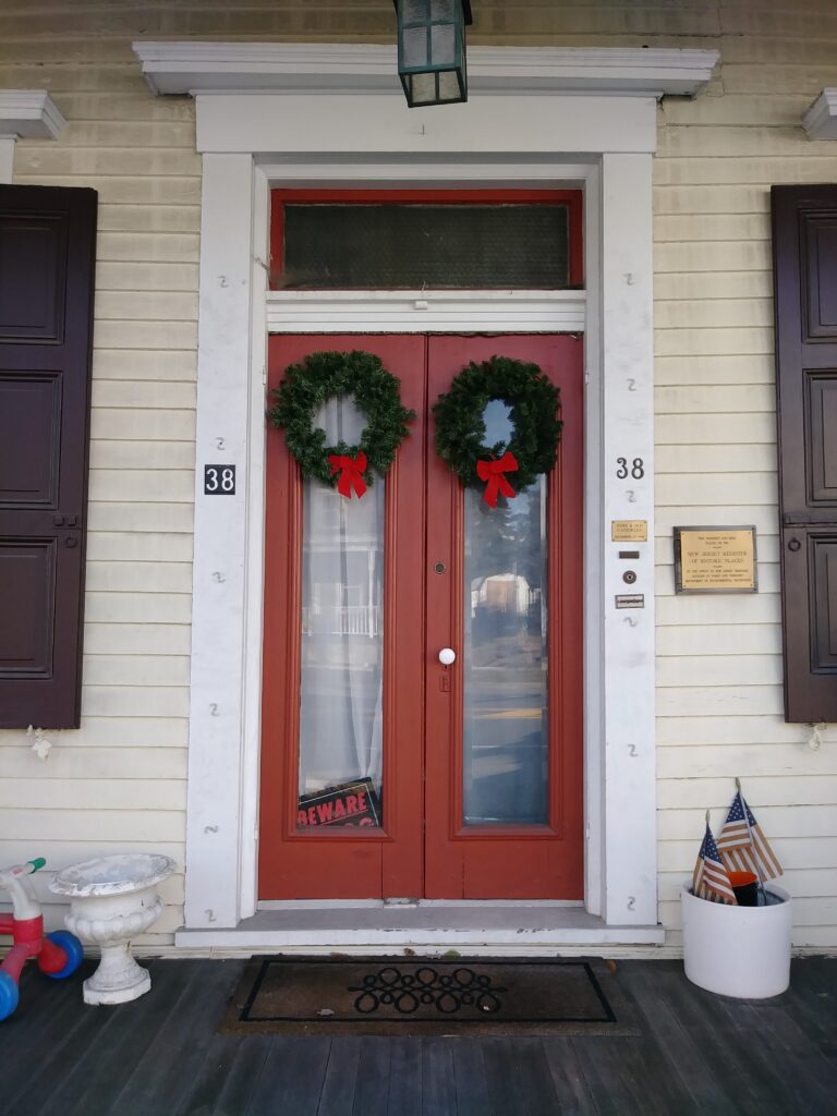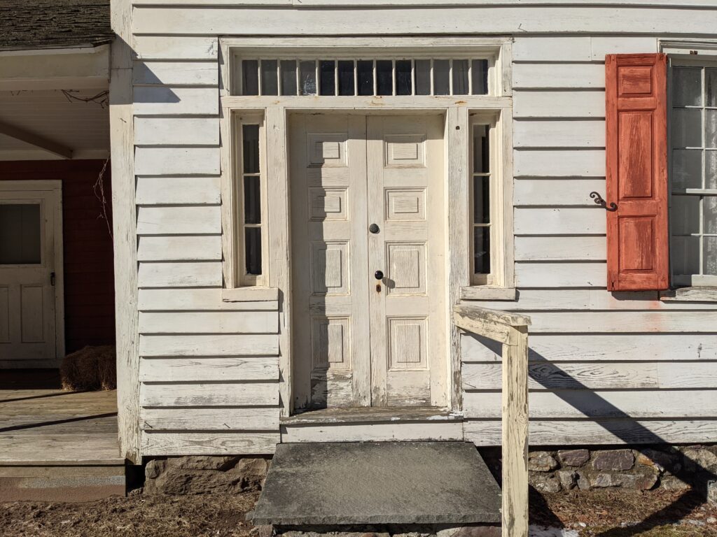 Two adjacent doors that share the same door frame, and between which there is no separating vertical member. Double doors are often referred to as “French doors”, due to their preponderance in French architecture. (Easement, 2017) Photo from Medford, New Jersey, 2018.