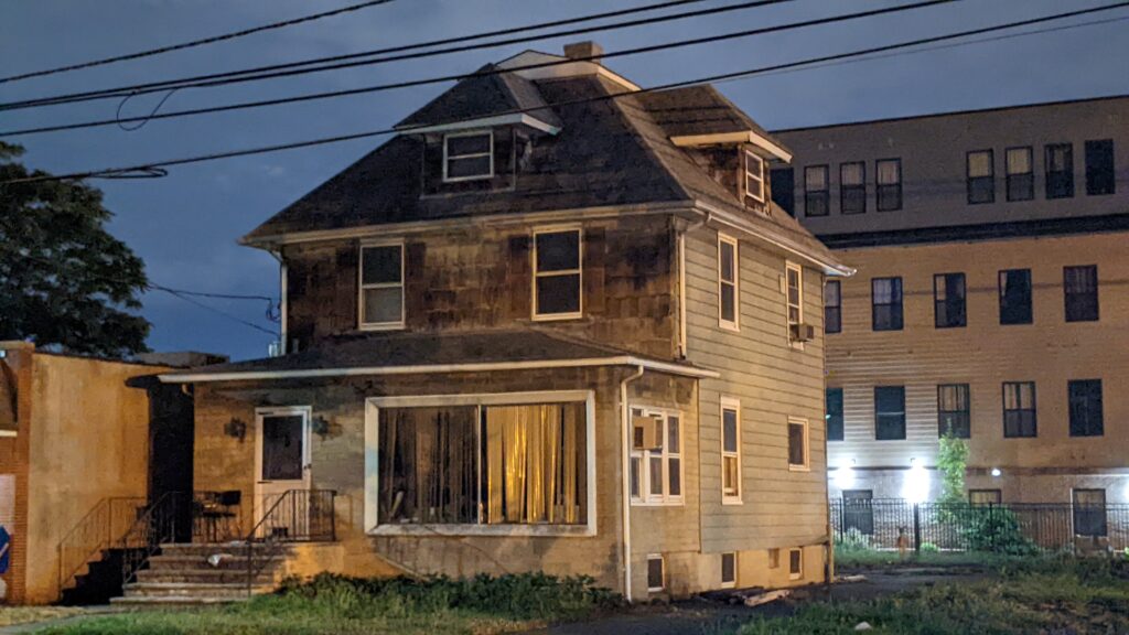 The name given to the simple, square -shaped house built in profusion as middle-class housing between 1900 and 1930. (Baker, 1994) Photo from Metuchen, New Jersey, 2022. Building demolished.