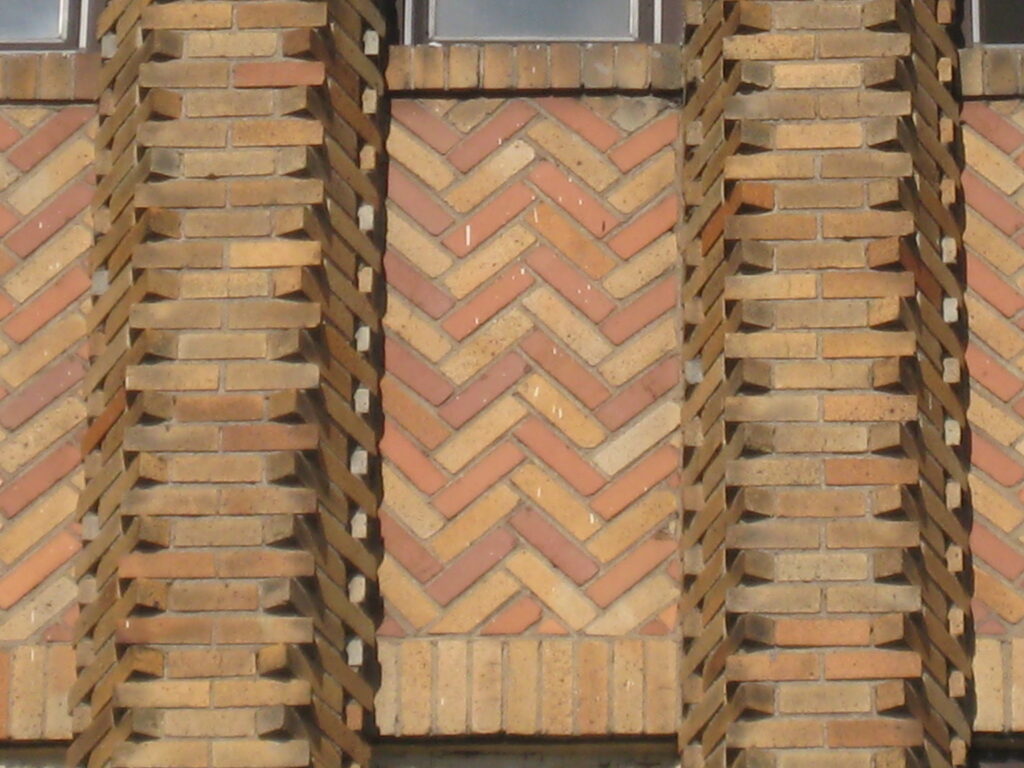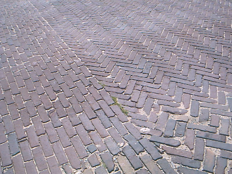 A brickwork pattern characterized by courses laid diagonally and in opposite directions from adjacent courses; frequently used as a decorative device for floors and walls . (Phillips, 1994) Photo from Highland Park, New Jersey, 2007.