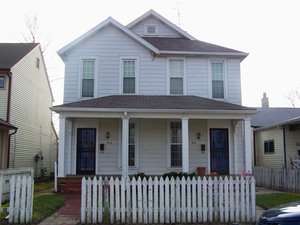 A porch with hipped form, often serving as an entrance to a building. Photo from Ransom Place, Indianapolis, Indiana, 2005.