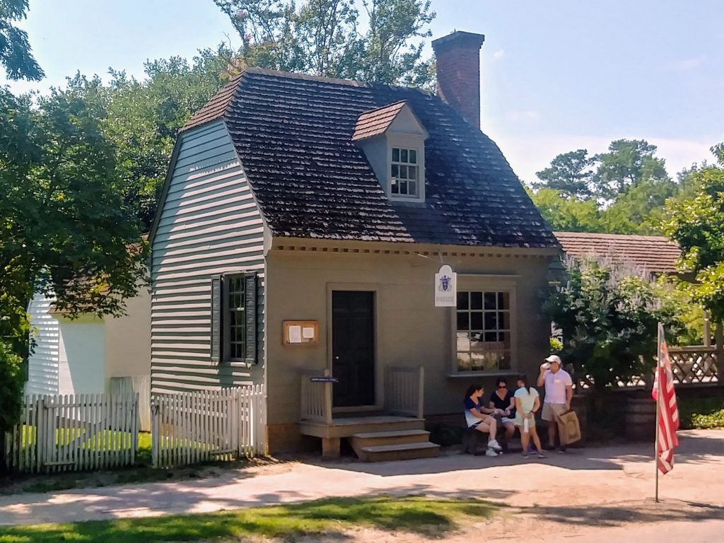 A roof form characterized by a clipped, or truncated, gable. Photo from Williamsburg, Virginia, 2019. (Phillips, 1994)