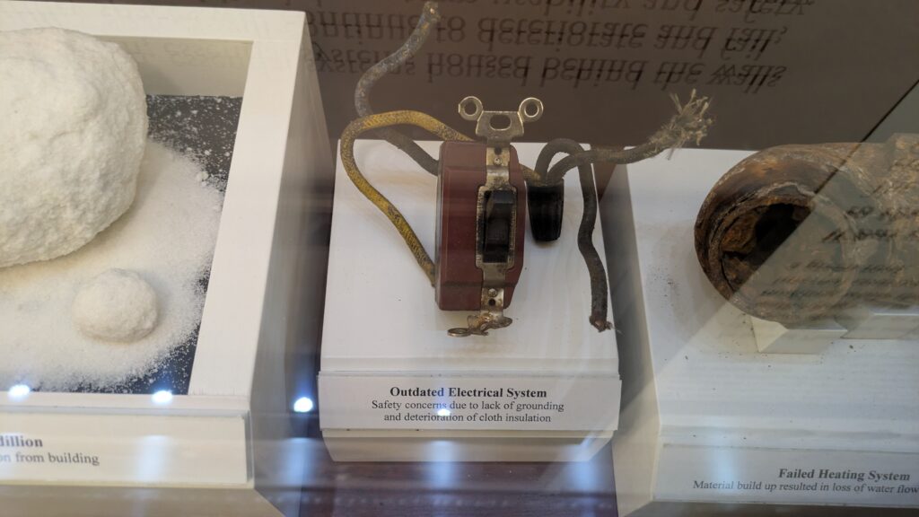 Safety concerns due to lack of grounding and deterioration of cloth insulation. Photo from Washington, DC, 2026.