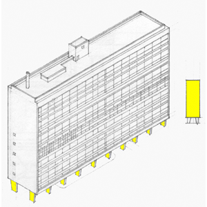 Column on an unenclosed ground floor carrying a raised building above. (Axiom43)