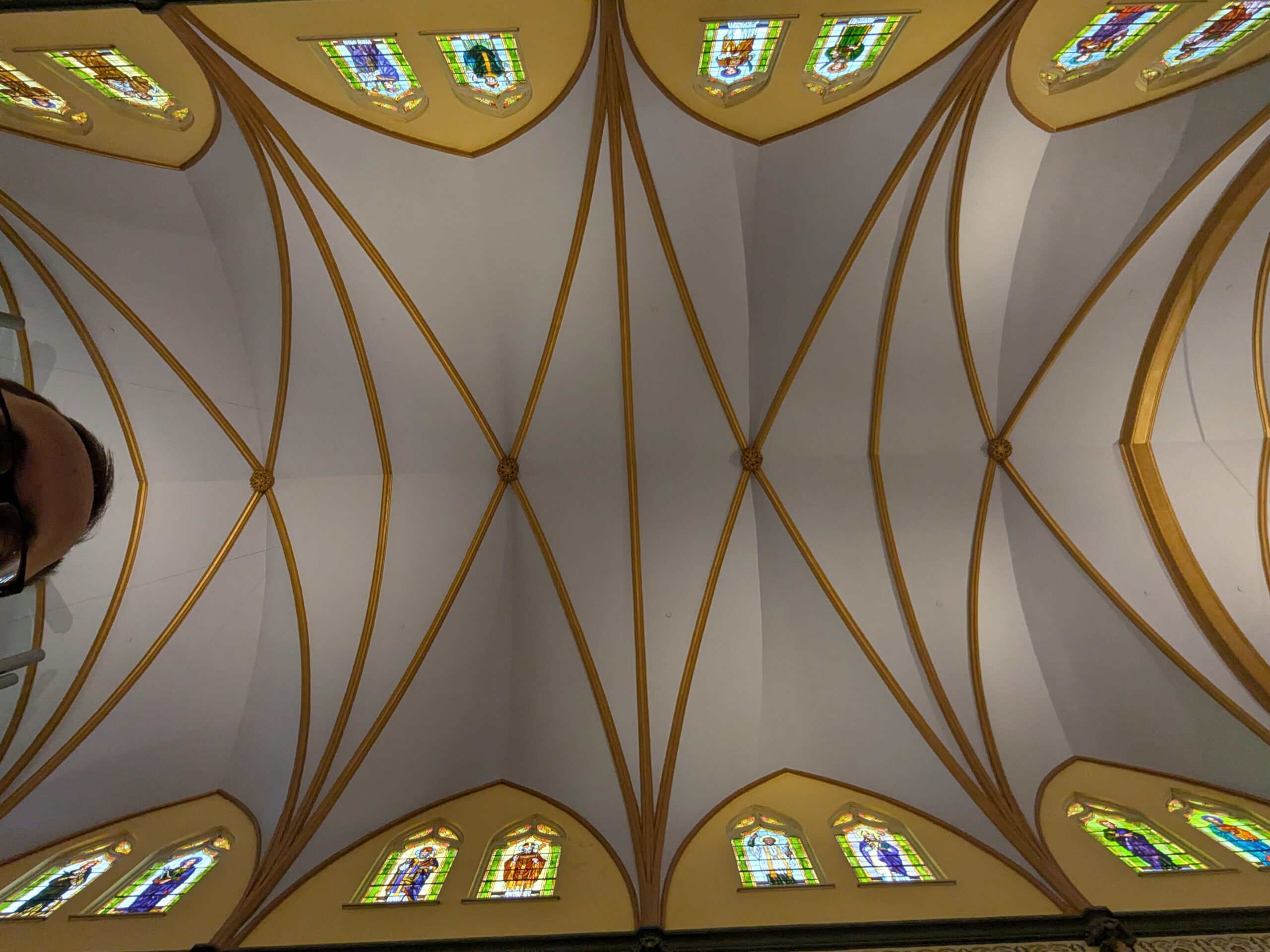 A groined vault over a rectangular area, the area defined by ribs on each side and divided into four parts by intersecting diagonals. Photo from Brooklyn, New York, 2015. (Harris, 1977)