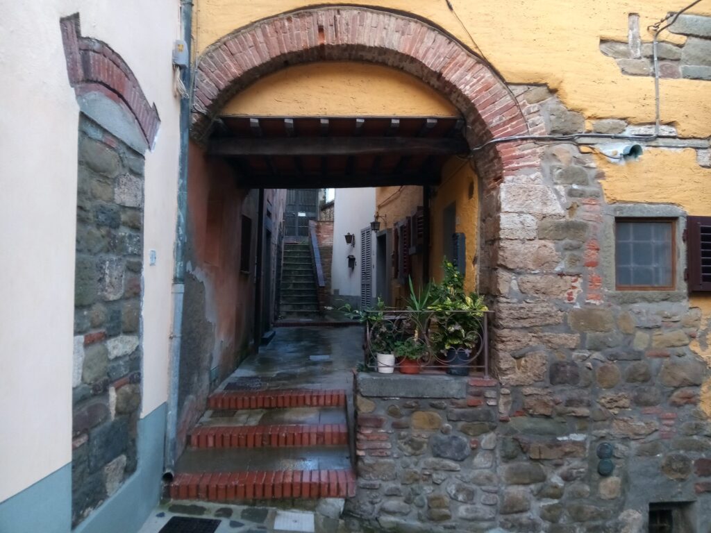 An arch embedded in a wall; used to relieve the section below it of weight from above. A relieving arch is often found over a lintel or a flat arch. Photo from Montecatini, Italy, 2018. (Phillips, 1994)