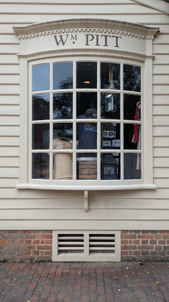 A shop window, arranged for the display of goods to persons in the street. (Sturgis, 1900) Photo from Colonial Williamsburg, Williamsburg, Virginia, 2025.