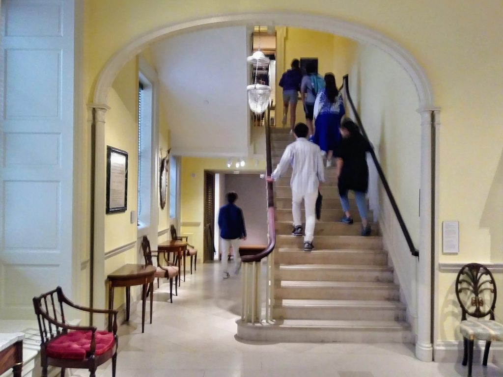 A flight of stairs including handrails, newels, balustrades, landings, and strings. Photo from the Metropolitan Museum of Art, New York City, New York, 2019. (Phillips, 1994)