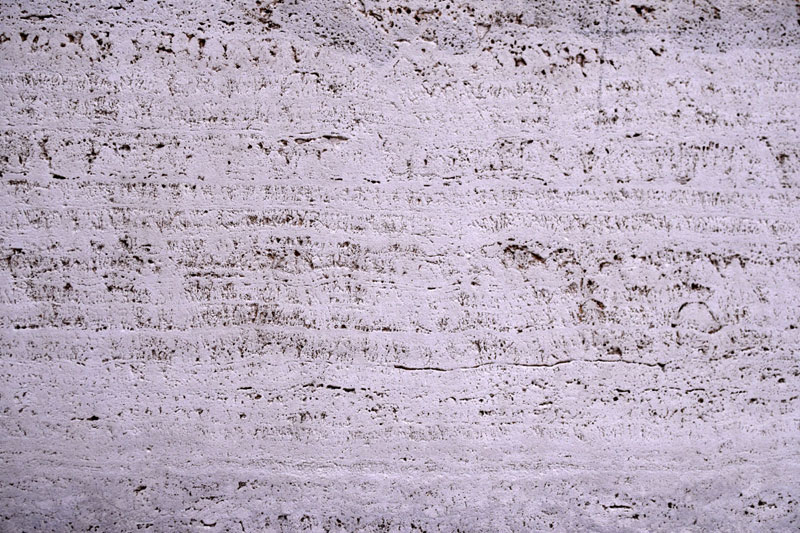 A variety of limestone deposited by springs; usually banded; commonly coarsely cellular; used as building stone, especially for interior facing and flooring. (Harris, 1977) Photo from Rome, Italy, 2025.