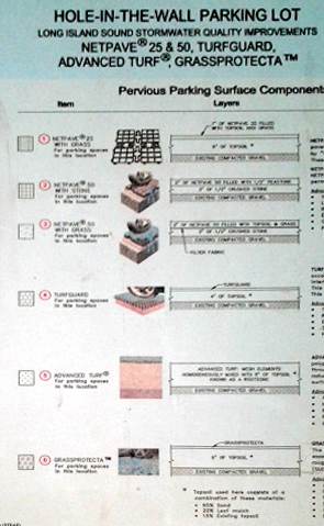 This graphic captures the many layers of the permeable pavers that allow runoff to be absorbed into the ground.