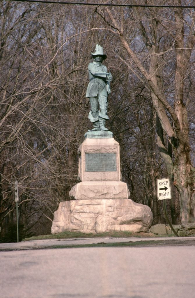 Captain Mason statue at original location at the intersection of Pequot Avenue and