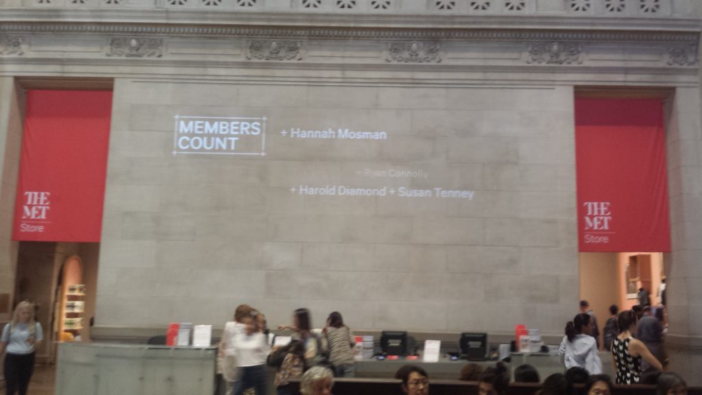 Visual projection in the entrance hall promoting membership at The Met. Member names scroll as a way to show appreciation.