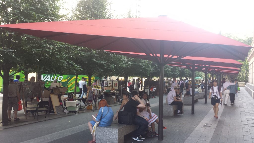 Outside of The Met, these stylish umbrellas create a shaded oasis and protection from the sun. This activates the Fifth Avenue frontage making the sidewalk a destination onto itself.