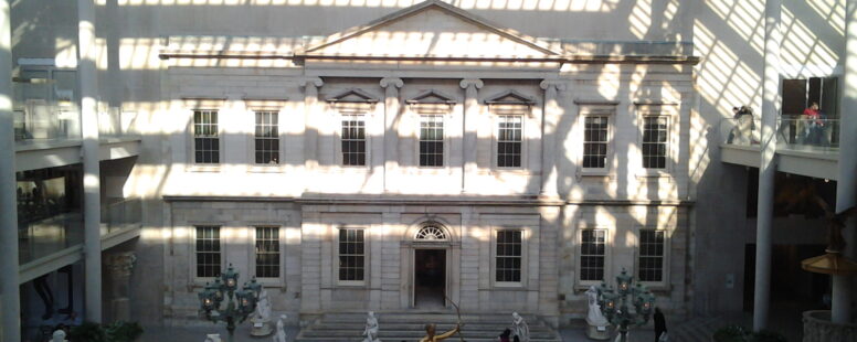 The Charles Engelhard Court is a spacious light-filled space that presents the Museum’s collection of American monumental sculpture, architectural elements, and stained glass. On the second floor are holdings of American silver, pewter, jewelry, ceramics, and class. The court serves as a grand vestibule to the American Wing, with period rooms and galleries dedicated to the decorative arts, paintings, and sculpture.